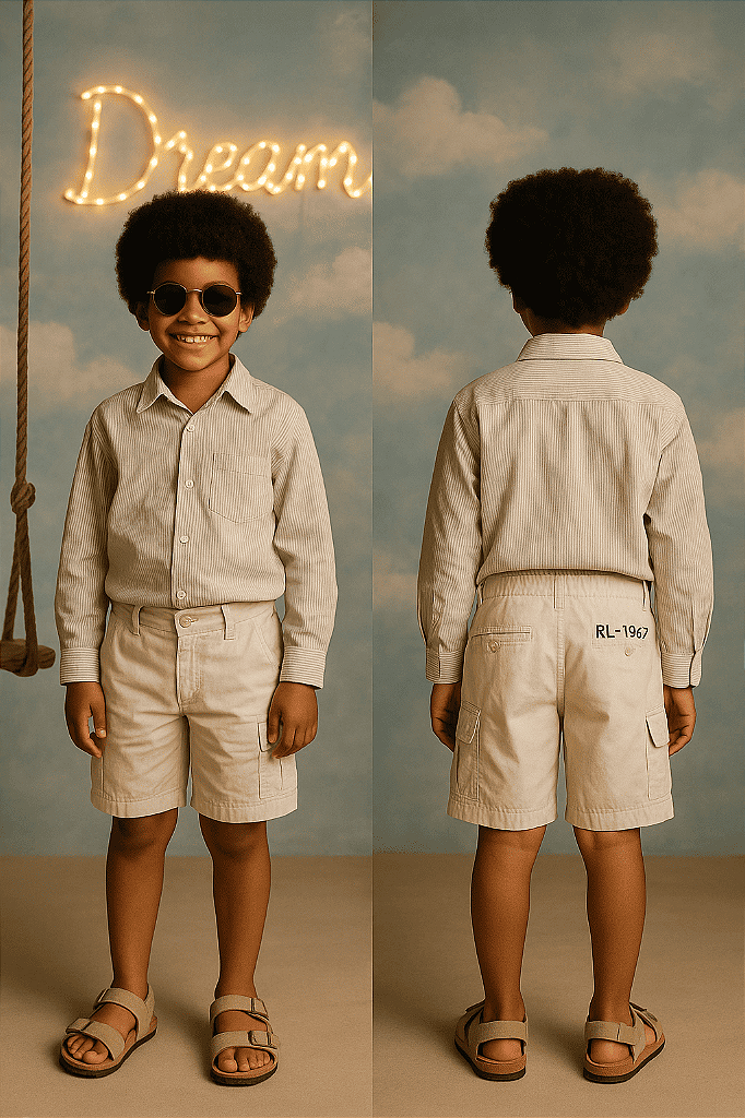 Bermuda cargo Ralph Lauren infantil, confeccionada em tecido de algodão resistente e confortável. Modelo com fechamento frontal por zíper e botão, passantes para cinto e bolsos laterais funcionais.