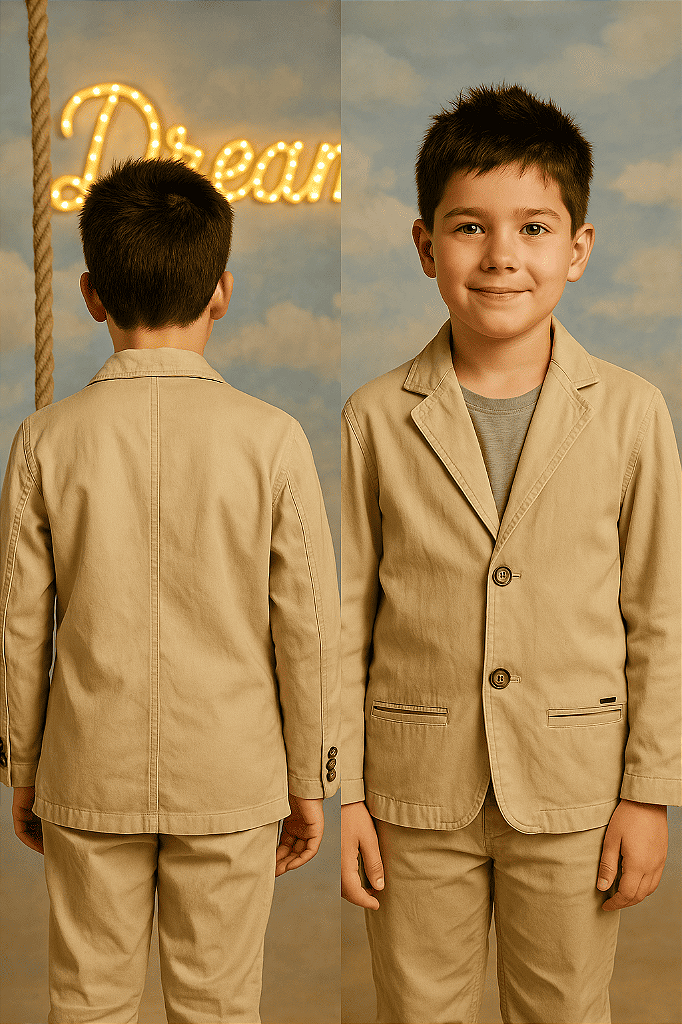 Confeccionado em um tecido de algodão ou sarja leve, este blazer é ideal para ocasiões especiais ou para adicionar um toque de sofisticação a looks mais casuais. Veste tamanho 10 anos.