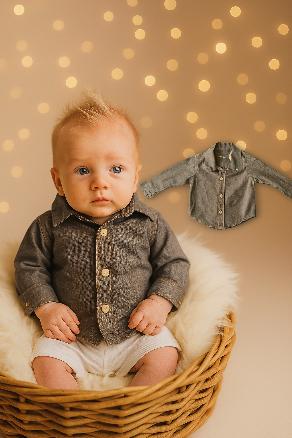 Com um design sofisticado e atemporal, esta camisa de manga longa é ideal para casamentos, festas de aniversário e cultos na igreja. O colarinho americano confere um toque clássico, enquanto o caimento reto proporciona conforto e liberdade de movimento. A paleta de cores cinza é versátil e combina facilmente com diversas peças do guarda-roupa infantil, permitindo criar looks encantadores e cheios de estilo. Perfeita para a temporada de outono/inverno, a Camisa Onda Marinha é uma adição essencial ao vestuário dos pequenos. Vista seu bebê com elegância e conforto, tornando cada momento especial ainda mais memorável.