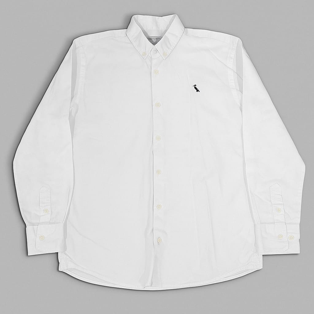 Camisa da marca Reserva Mini confeccionada em algodão branco. Modelo de manga longa com fechamento frontal por botões, gola tradicional com abotoamento e punhos ajustáveis. Possui bordado discreto do ícone da marca na parte frontal, em contraste preto. Peça versátil, ideal para compor tanto looks casuais quanto produções mais formais.