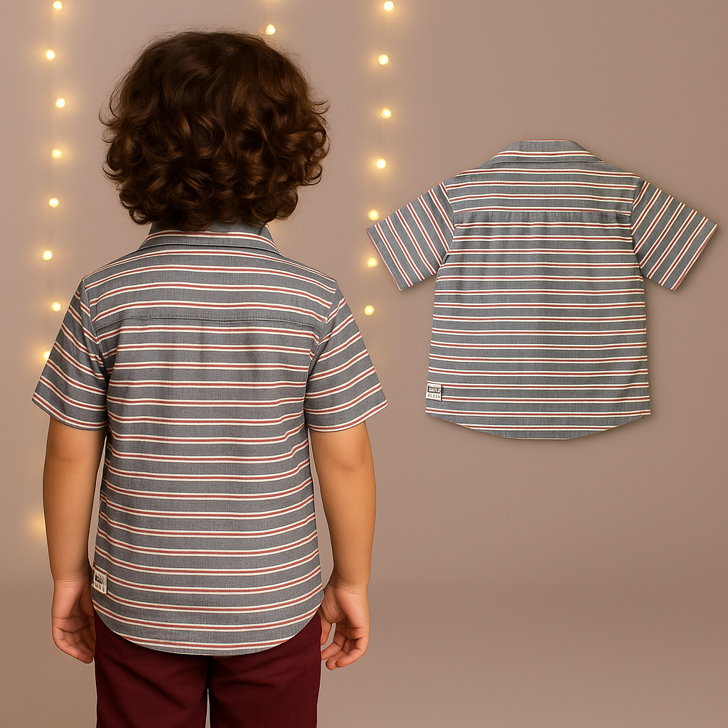 Camisa infantil da marca U.S. Polo Assn., confeccionada em tecido leve e macio de algodão, ideal para dias mais quentes. A peça apresenta padronagem listrada horizontal nas cores azul marinho, branco e vermelho, com lavagem estonada que confere um visual moderno e despojado. Possui modelagem reta, gola tradicional, fechamento frontal por botões e bolso funcional no peito com bordado do logo da marca em azul. As mangas são curtas e o acabamento da barra é levemente arredondado. Etiqueta decorativa aplicada na parte inferior da peça. Uma camisa versátil, que combina estilo casual com conforto. Veste tamanho 7 anos.
