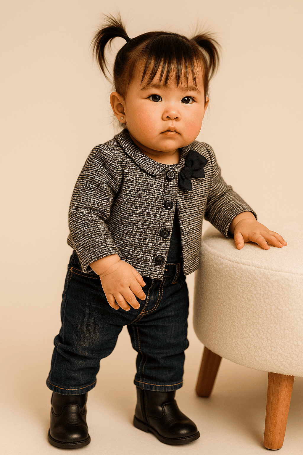 Ideal para eventos formais, festas, sessões de fotos ou como sobreposição em dias amenos. A peça une charme clássico ao conforto, garantindo estilo desde os primeiros anos de vida.