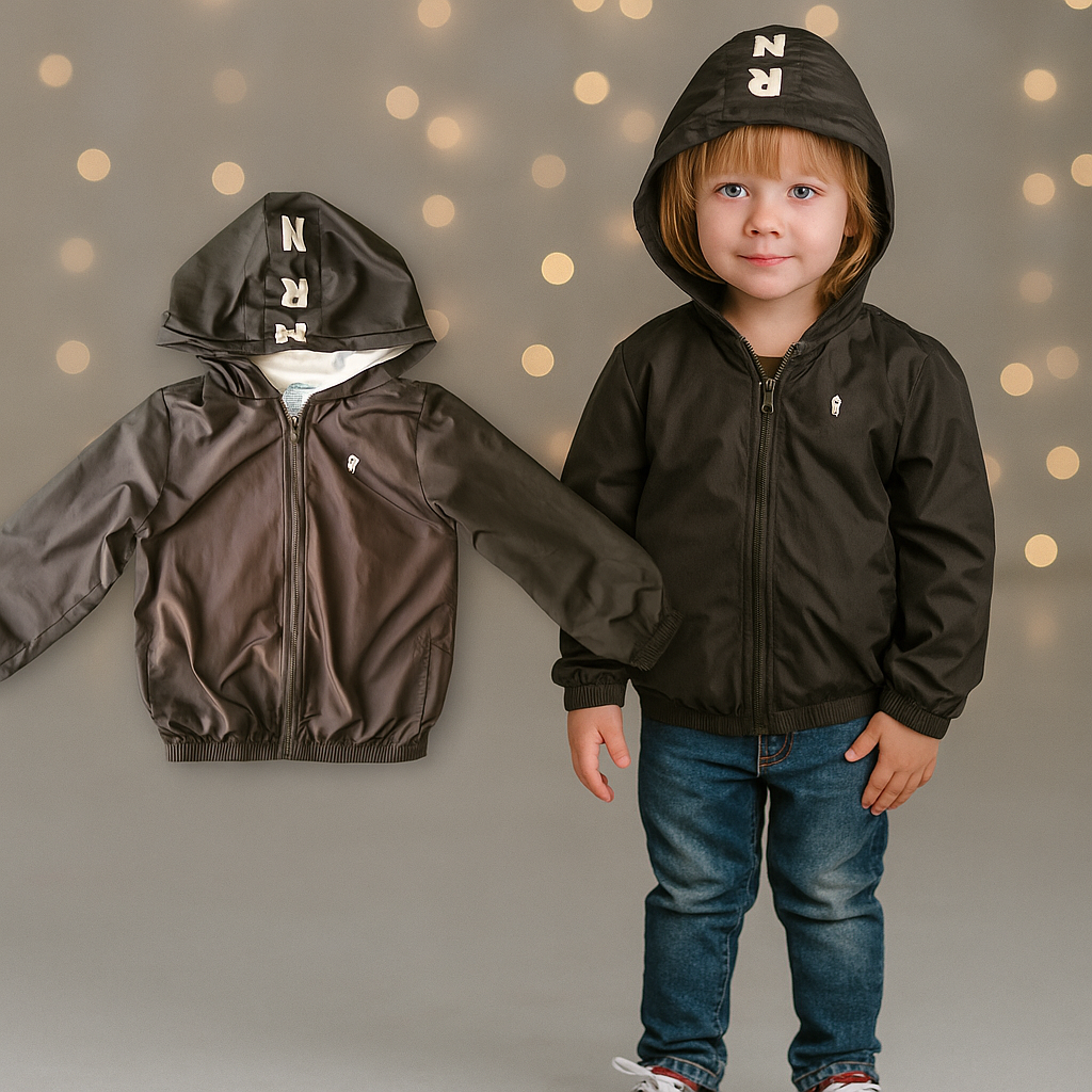 O modelo apresenta fechamento frontal por zíper, punhos e barra com elástico embutido para melhor ajuste ao corpo, além de dois bolsos frontais embutidos. O capuz fixo conta com estampa em letras contrastantes, reforçando o visual urbano da peça. Um pequeno logotipo no peito finaliza o design com discrição. Ideal para complementar looks casuais com praticidade e estilo. Veste tamanho 6 anos.